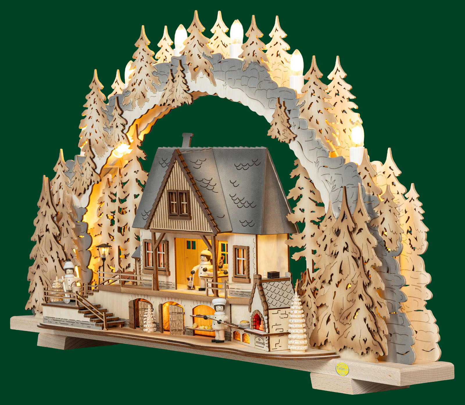 variabler LED Schwibbogen "Bergblickstübl",mit "Original Tietze Figuren", exklusiv