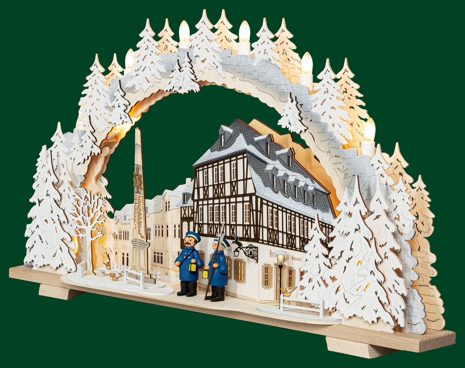 variabler LED Schwibbogen "Hotel zum Ross", beschneit