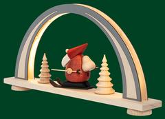 LED Schwibbogen -"Weihnachtsmann auf Ski (Figuren im Karton beiliegenden) NEW LINE, inkl.Netzteil, Grau/Natur